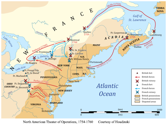 In contrast, in addition to population and naval resources, the English Atlantic colonies enjoyed a temperate climate and bounteous harvests. No worries here about food during the winter. One serious disadvantage, however, was in Britian’s colonial administration. Over the years, London had diffused political power in a series of charters to the provincial level. There was no overall man in charge. The king ruled this land through colonial governors and assembles; English generals and governors could not compel provincial governments to do anything. They had to negotiate with local elites and assemblies, each with their own interests, to act for the security of all.