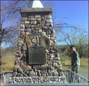 SPC Jake Whittaker observes the monument at the Bear River Massacre site during a staff ride with the Idaho National Guard. Picture was taken looking east. Picture by Lonny Grout |