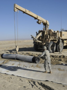 The equipment was suitable for the task. The platoon used roll-out ground access mats marketed under the MOBI‑MAT brand. Manufacturer documentation describes product families designed to improve ground bearing on soft soils and to provide non-skid traction surfaces for repeated wheeled traffic. Variants are deployable by hand or with mounted dispensers and can be staked or anchored to prevent movement (Deschamps SAS, n.d.-a; Deschamps Mats Systems Inc., n.d.). Although engineer units often employ similar matting to reinforce bridge approaches or airfield shoulders, the Distribution Platoon repurposed the capability as a convoy mobility tool that could be carried on FMTVs and a wrecker, then emplaced quickly at a known obstacle.