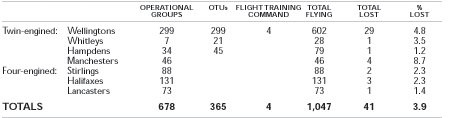 The first thing to note is that 35 per cent of the aircraft were drawn from OTUs or Flight Training Command. By definition, most of these had no business being on any raid over Germany, let alone against a major target. Even if they had experienced pilots aboard ; and many of the OTU planes were flown by OTU instructors ; the majority of the crews were by definition still in training for operational status. By risking this percentage of trainees, Harris was rolling dice with the future of Bomber Command. The Berlin-Mannheim raids of November had cost 28 of 244 aircraft, a 12.5 per cent loss rate. Had Harris lost 130 aircraft (12.5 per cent of his force) over Cologne, it is certain that he would have been sacked and Bomber Command's future would have been bleak indeed. The gambler in Harris paid off, but he was literally playing the percentages.